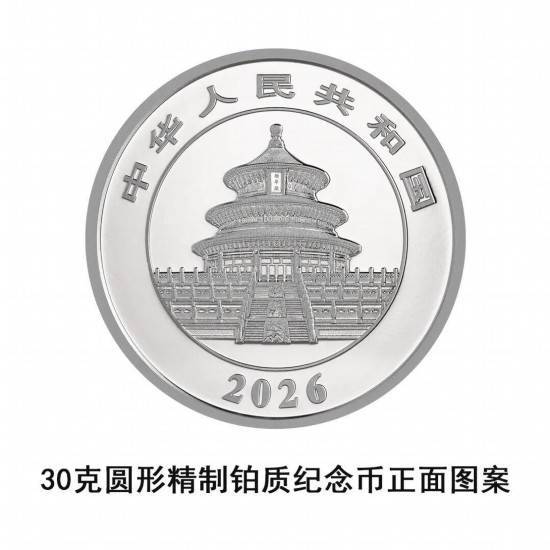30克圆形铂质驰念币为精制币,含纯铂30克,直径32毫米,面额1000元,成色99.9%,最大刊行量10000枚。