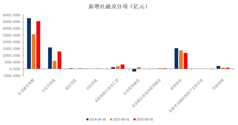 9月社会融资界限新增3.53万亿元,同比少增2297亿元,高于商场预期(预期3.27万亿元);社融存量同比增速较上月回落0.1个百分点至8.7%。